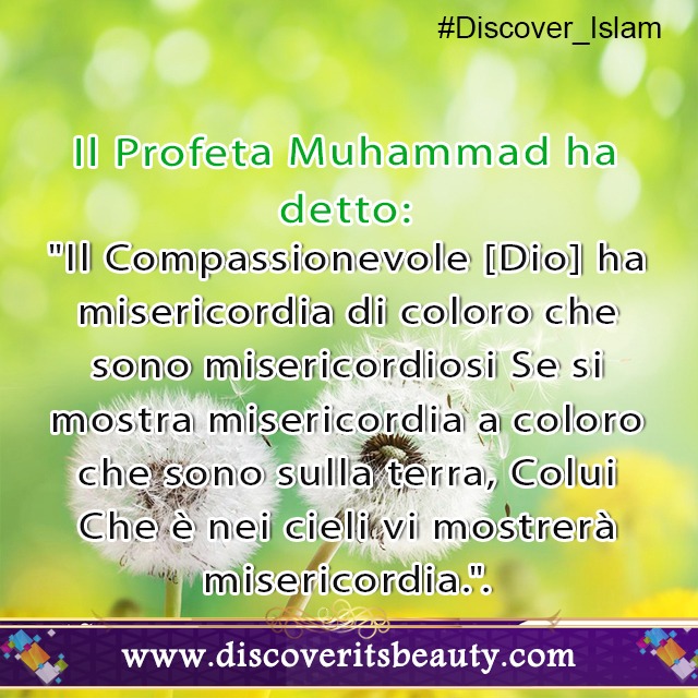 Il Profeta Muhammad ha detto: "Il Compassionevole unico [Dio] ha misericordia di coloro che sono misericordiosi. Se mostrate misericordia a coloro che sono sulla terra, Colui Che è nei cieli vi mostrerà misericordia.".