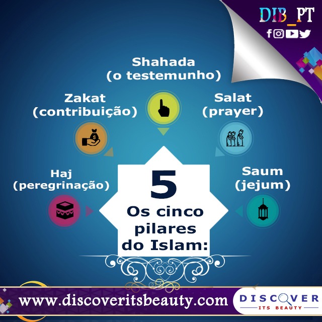 109. Os cinco pilares do Islam: Shahada(o testemunho), Salat(oração), Zakat(contribuição), Saum(jejum) e Haj(peregrinação).